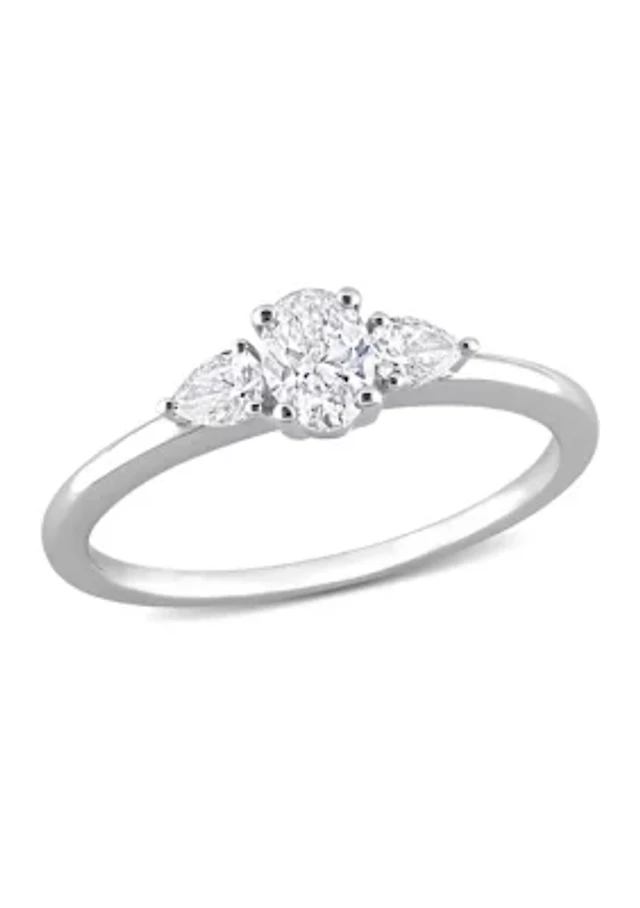 1/2 Ct TW Oval and Pear Diamond 3-stone Engagement Ring 14k White Gold