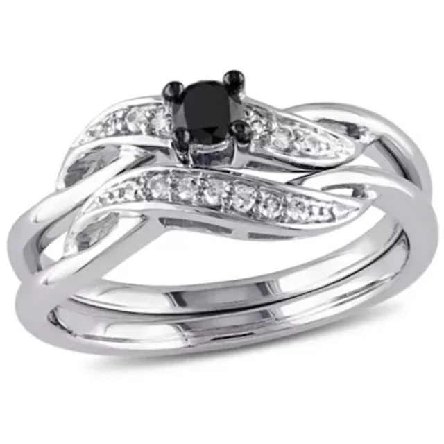 Men's 1/4 ct. t.w. White and Black Diamond Ring Rhodium Plated Sterling Silver