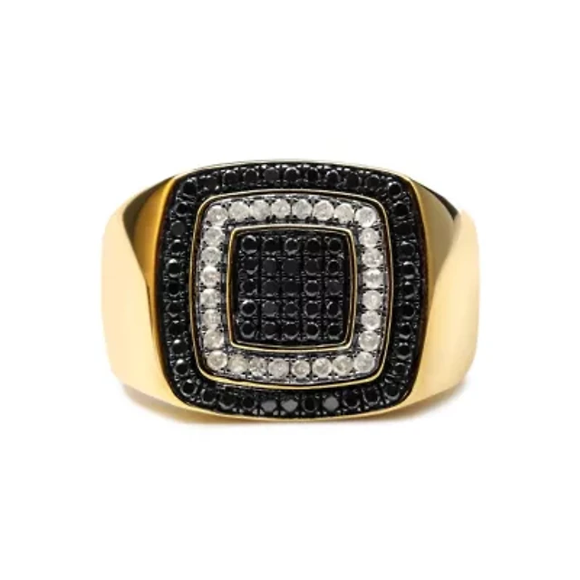 Men's 10K Yellow Gold 3/4 Cttw White and Black Treated Diamond Ring Band