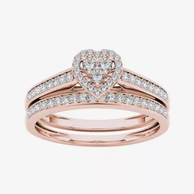 1/2 CT. T.w. Diamond Heart Frame Three Piece Bridal Set in 10K White Gold