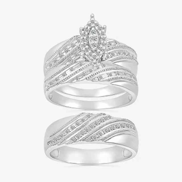 5.20mm Unisex Adult 1/4 CT. T.W. Natural White Diamond 10K White Gold Round Side Stone Wedding Ring Set