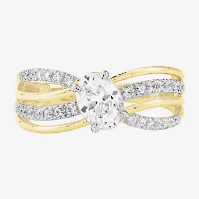 Signature By Modern Bride (F / Si1) Womens 1 3/4 CT. T.W. Lab Grown White Diamond 10K Gold Oval Side Stone Engagement Ring