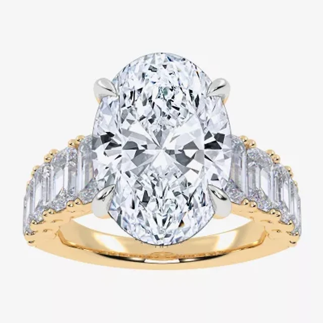 (I / I1) Womens 3 CT. T.W. Lab Grown White Diamond 10K Gold or 14K Round Side Stone Engagement Ring
