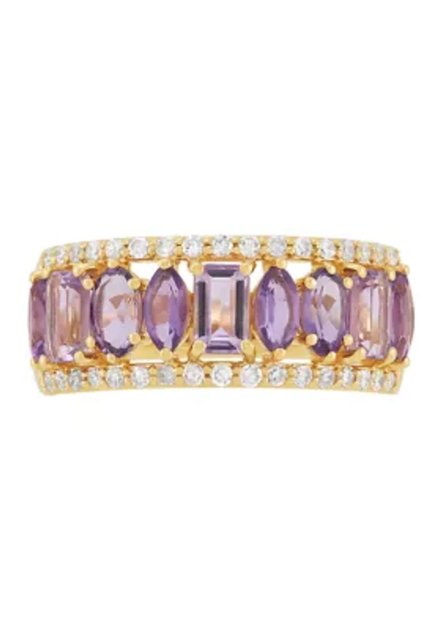 Previously Owned - Baguette Amethyst and White Topaz Alternating Five Stone Stackable Ring in 10K Gold