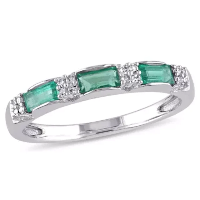 1/2 CTTW Diamond And Green Emerald Engagement Ring 14KW