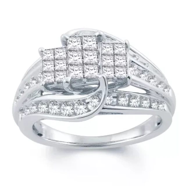 Womens 1 CT. T.W. Lab Grown White Diamond 10K Gold Side Stone Cocktail Ring