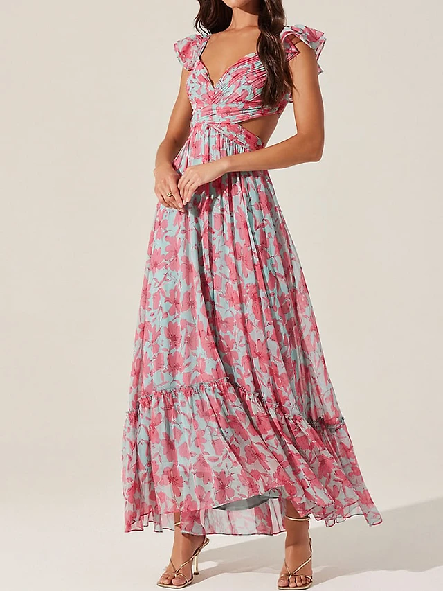V-Neck Sleeveless Tie Back Asymmetrical Maxi Dress