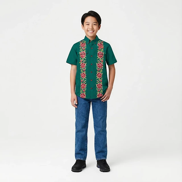Magellan Outdoors Boys' Laguna Madre Flores Button Down Shirt
