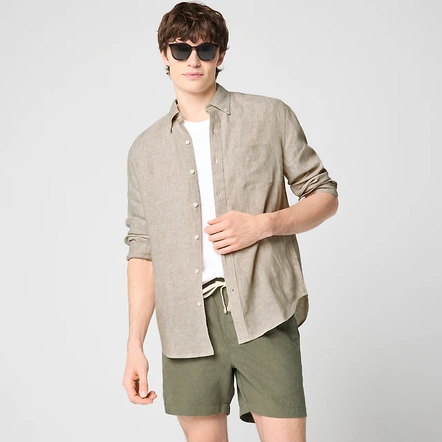 Classic-fit linen-blend shirt