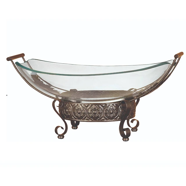 Brown Glass and Metal Traditional Serving Bowl, 10" x 23" x 14"