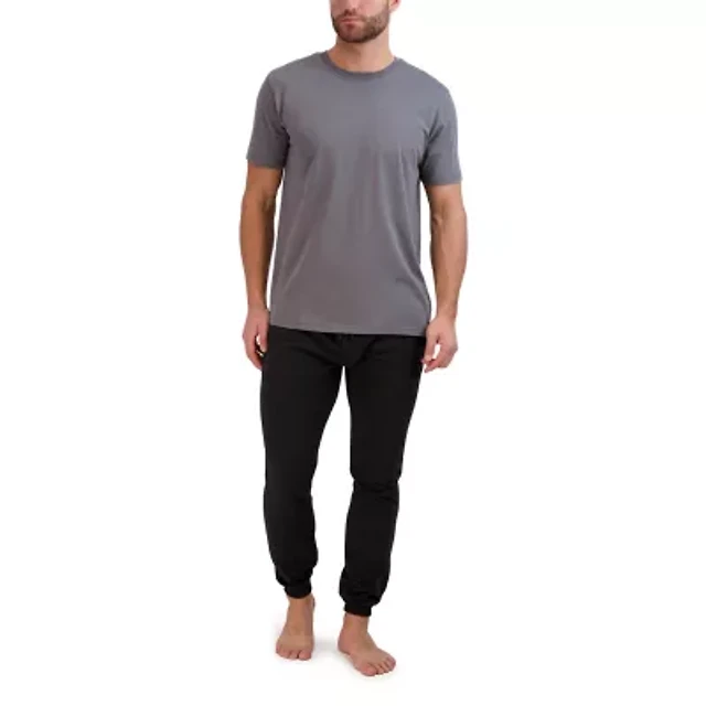 Hanes French Terry Mens Crew Neck Short Sleeve 2-pc. Big Pajama Sets