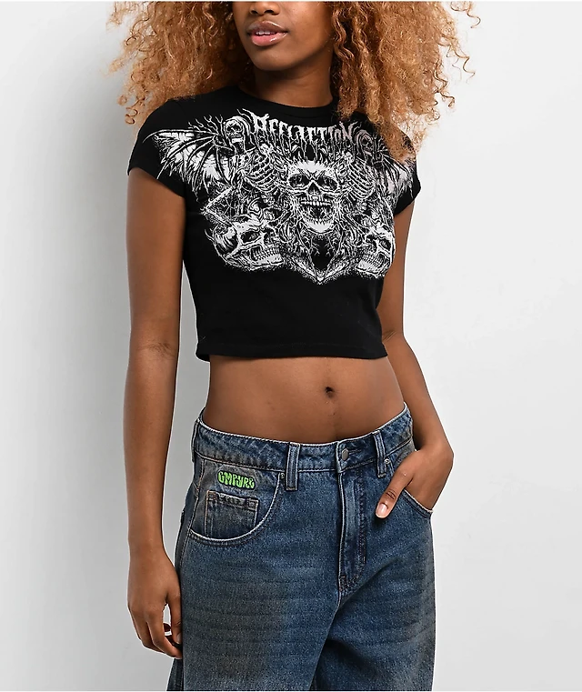 Affliction Collapse Black Lava Wash Crop T-Shirt
