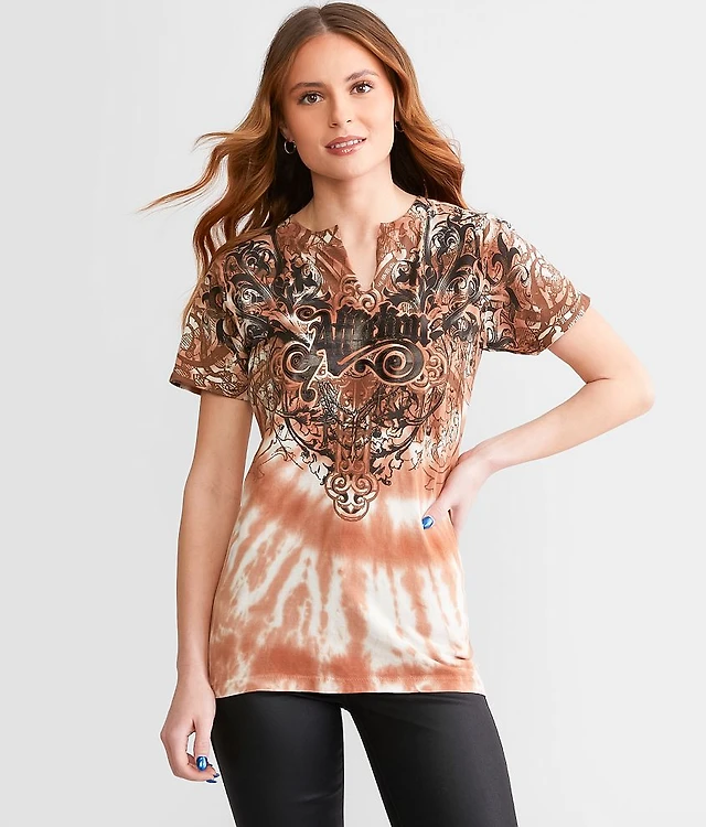 Afflicition Crows Burgundy Lava Wash Long Sleeve T-Shirt