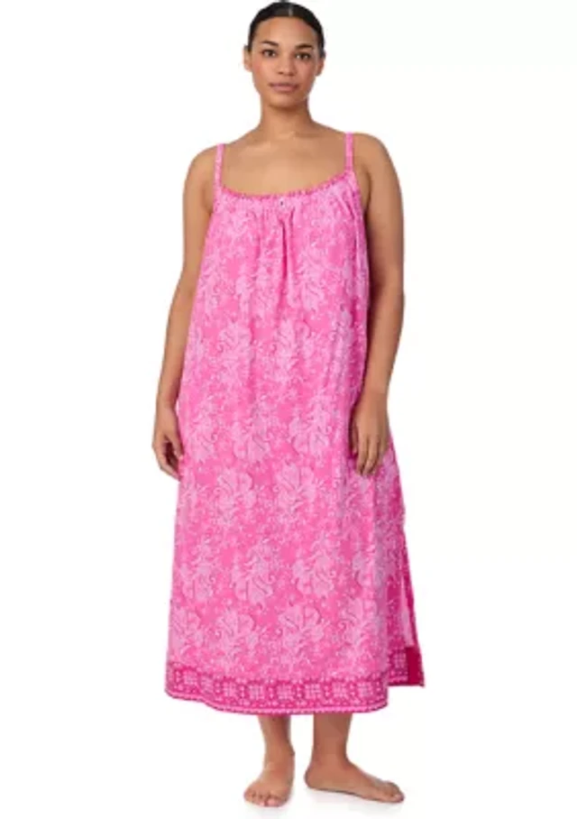 Papinelle Carly Floral Print Sleeveless Scoop Neck Woven Sateen Long Nightgown