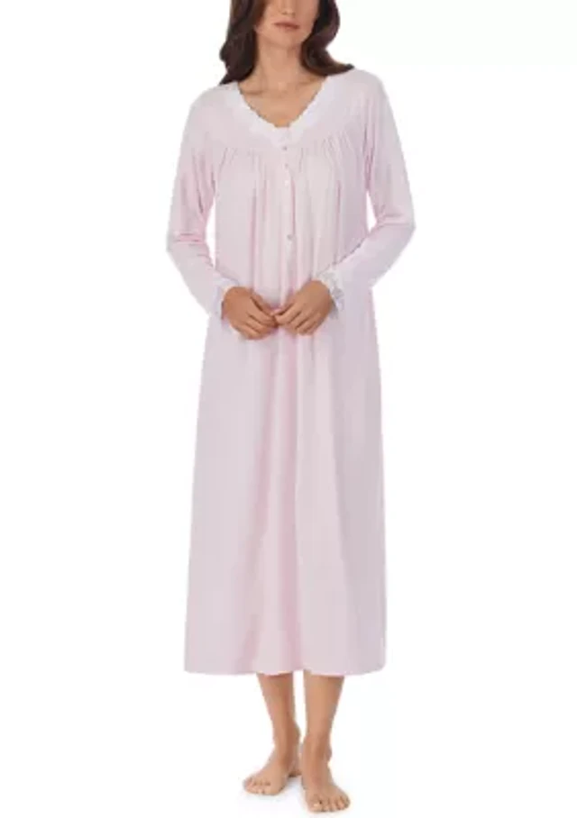 Adonna Womens Long Sleeve Round Neck Nightgown