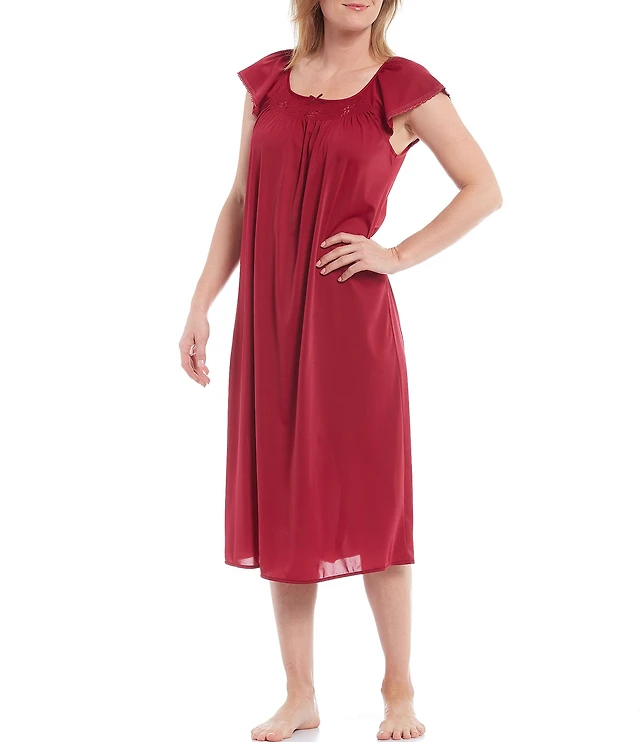 Miss Elaine Tricot Floral Embroidered Round Neck Short Flutter Sleeve Nightgown