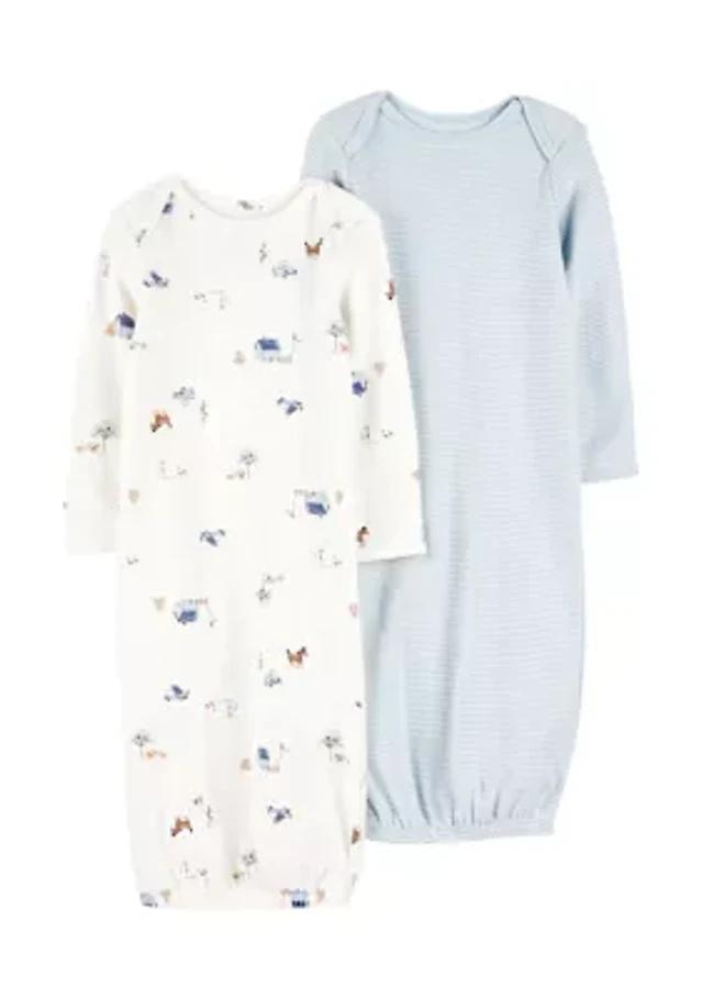 Girls 2-Pack Fairy Tale Dragon Loose Fit Night Gown - Blue/Ivory