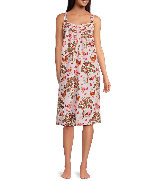 Eileen West Floral Print Sleeveless Sweetheart Neck Pointelle Knit Ballet Nightgown