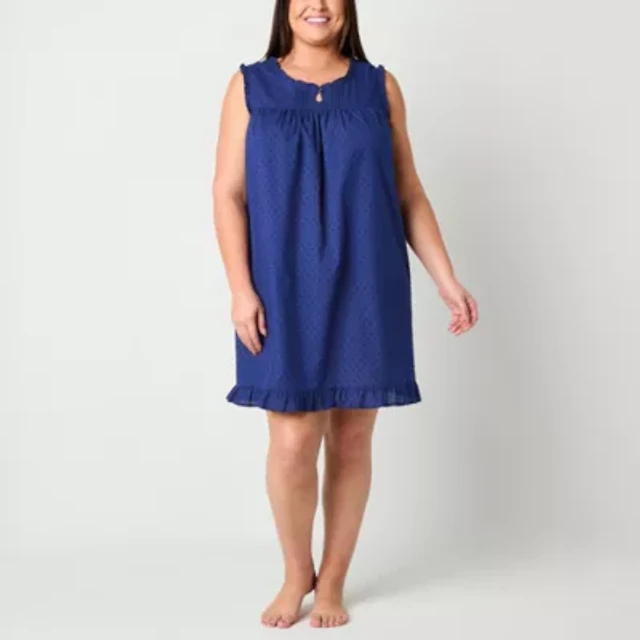 Adonna Womens Plus Poplin Scoop Neck Nightgown