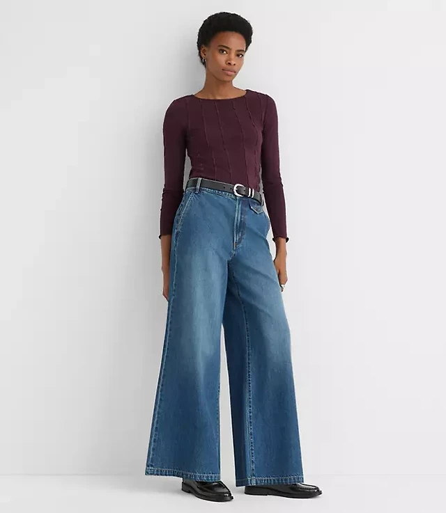Petite High Rise Relaxed Flare Jeans Medium Wash