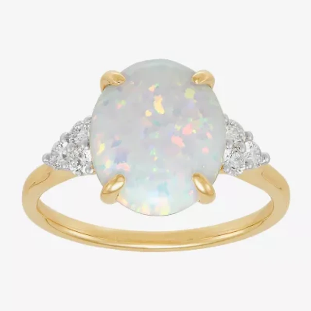 Womens Lab Created White Opal 14K Gold Over Silver Oval Side Stone Cocktail Ring