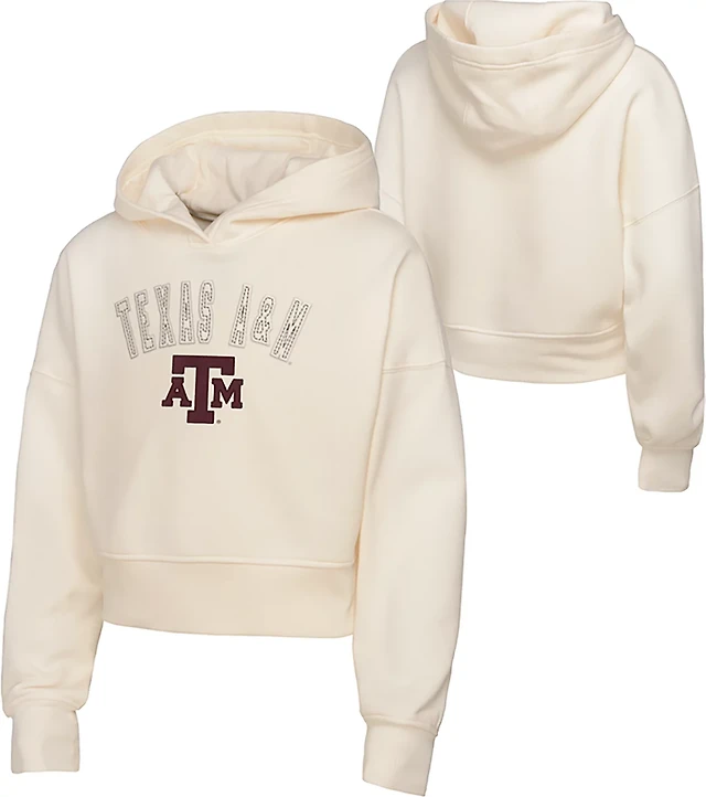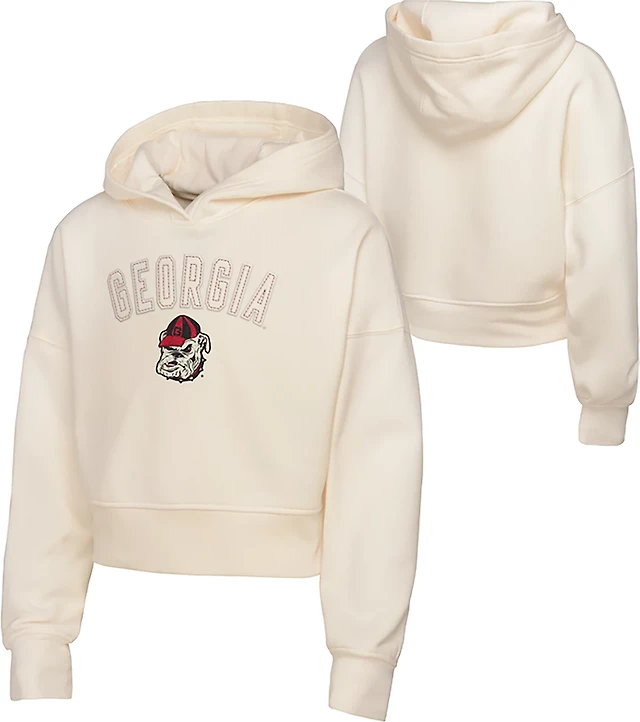 Women's Uscape Apparel Cream UAlbany Great Danes Circle Scene Raw Edge Cropped Pullover Hoodie