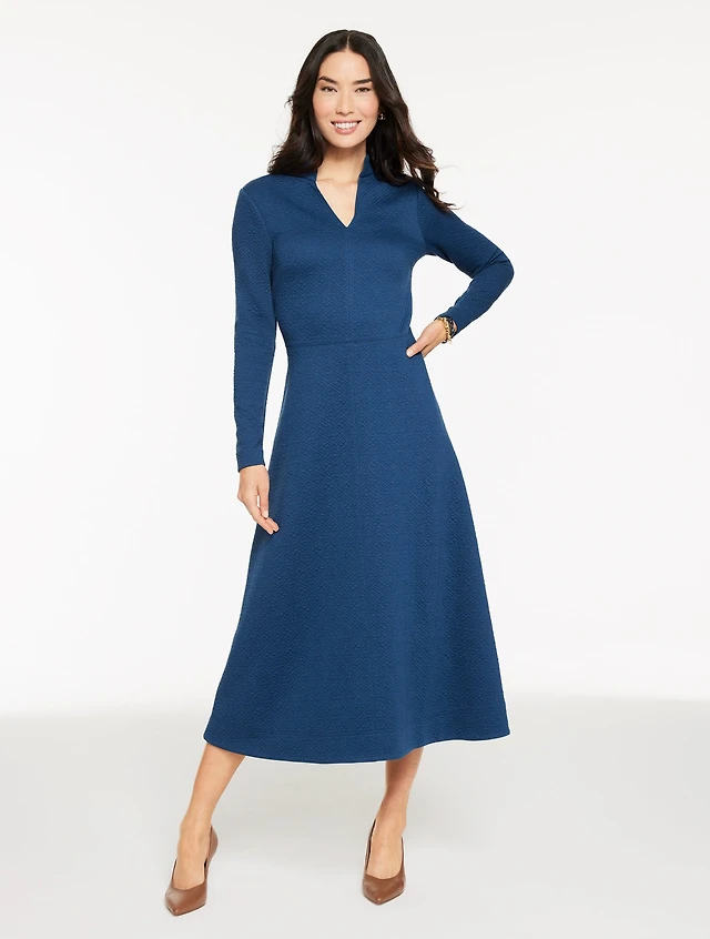 Ann Taylor Petite Mixed Media Flare Midi Dress Size 4 Poised Plum Women's