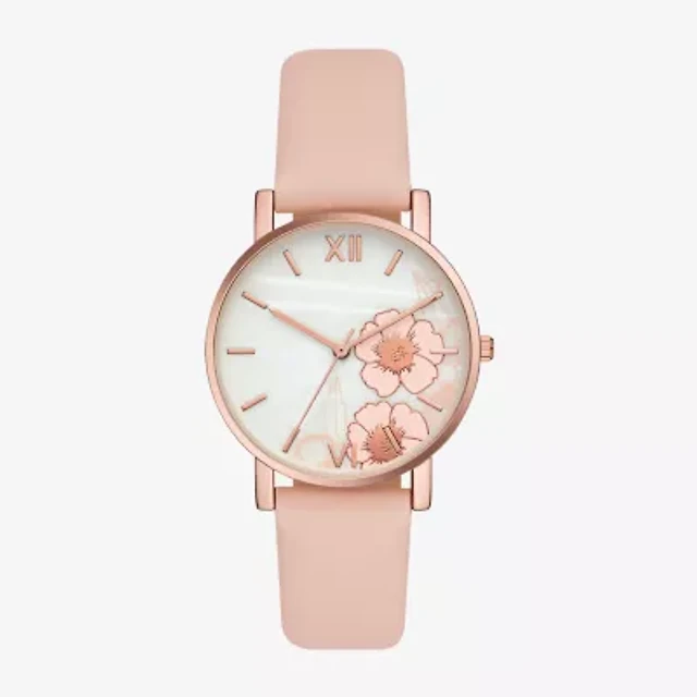 Pink Faux Leather Strap Watch