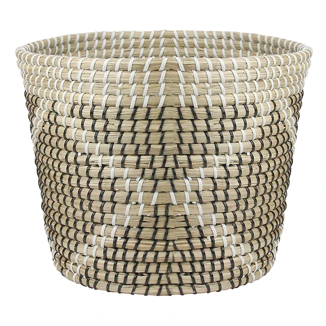 DII® Large Black & Stone Striped Weave Round Paper Storage Basket