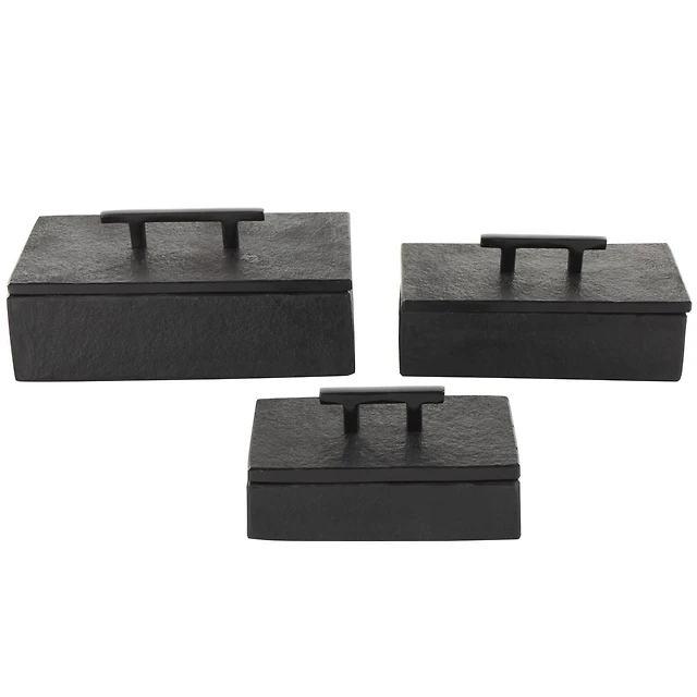 Black Marble Decorative Box with Aluminum Bar Handles, 3ct.