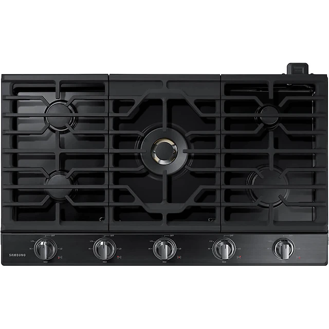 36 inch Black Gas Cooktop with Stainless Steel Knobs