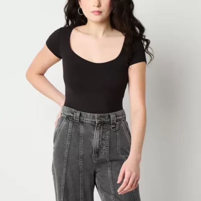 Arizona Womens Juniors Scoop Neck Short Sleeve Bodysuit