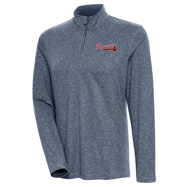 Women's Antigua Heather Navy Atlanta Braves Confront Quarter-Zip Pullover Top