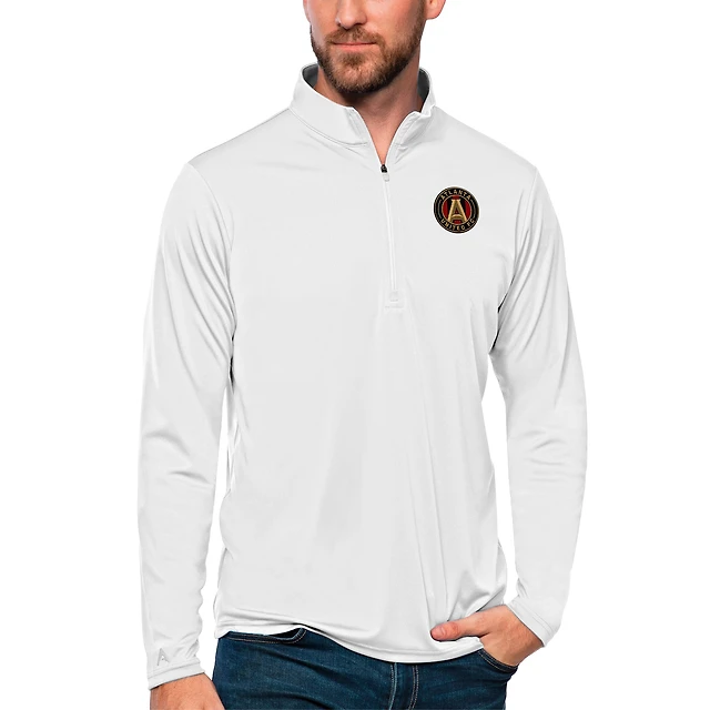 Men's Antigua White Atlanta United FC Tribute Quarter-Zip Pullover Top