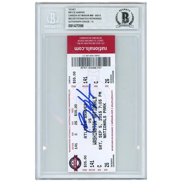 Bryce Harper Washington Nationals Autographed 500th Career Hit and 88th Career Home Run Game Ticket - Beckett/Fanatics Graded 10