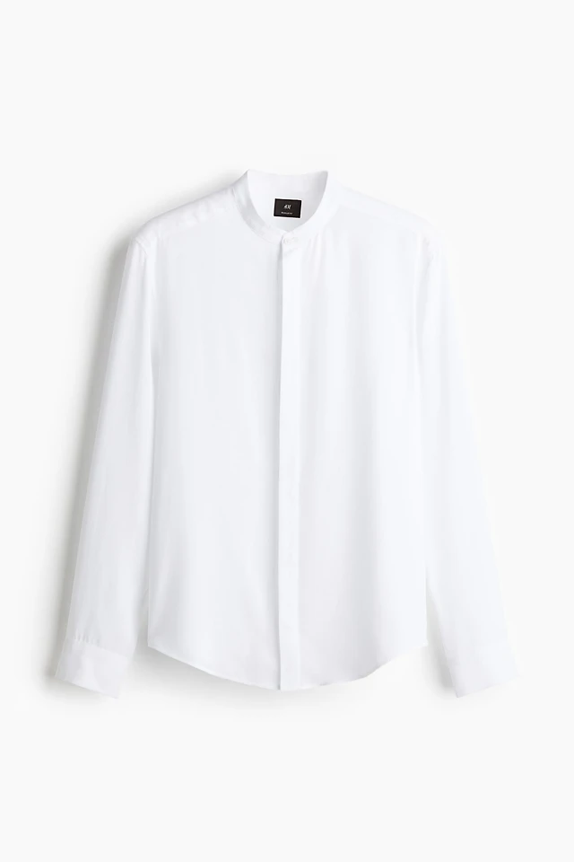 Regular Fit Lyocell Band-Collar Shirt
