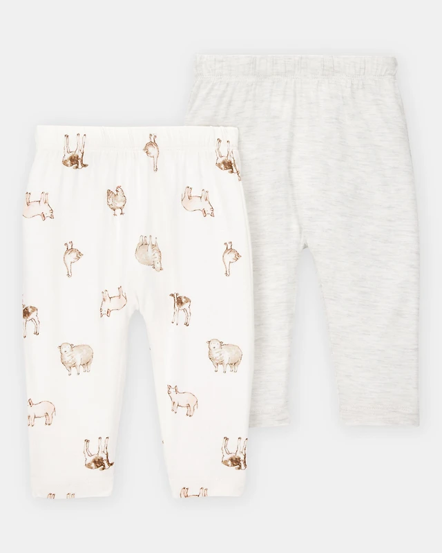 Baby Girl 2-Pack PurelySoft Pull-On Pants - Grey/Ivory
