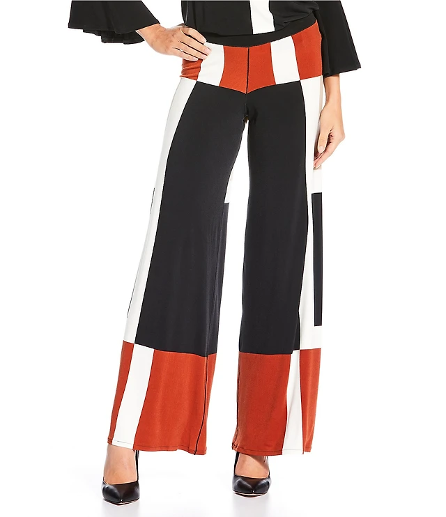 Ruby Rd. Wide Leg Contrast Striped Trim Pull-On Sweater Pants
