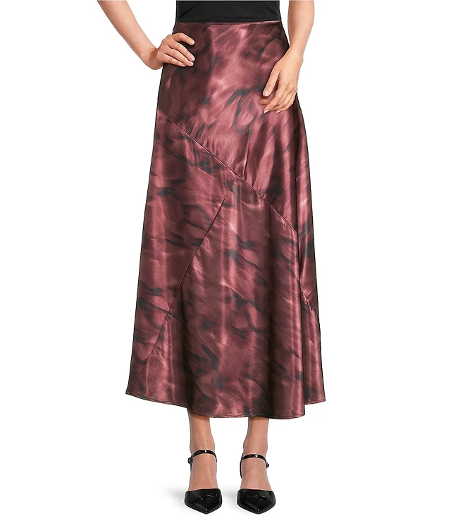 Sugarlips Satin Tropical Abstract Print Smocked High Waisted Wide Leg Coordinating Pull-On Pants