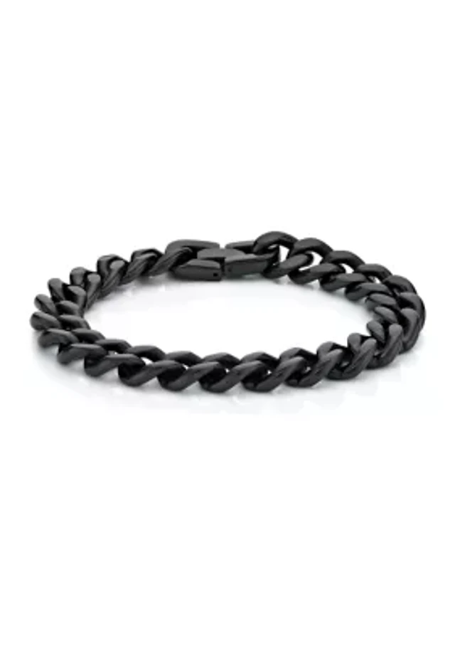 Stainless Steel 11 Millimeter Curb Chain Bracelet with Black Ion Plating, 8 Inch
