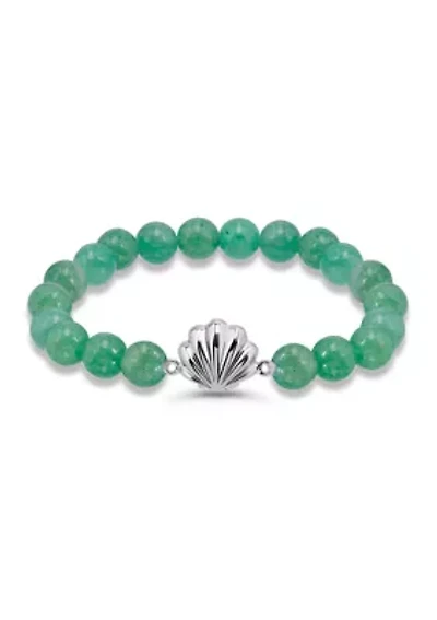 8mm Simulated Onyx Bead and Anchor Charm Stretch Bracelet in Sterling Silver - 7.5"