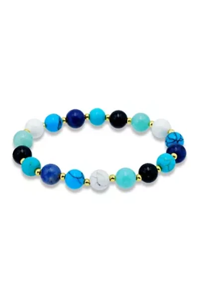 Men's 3-Piece Set Multi Gemstone Stretchable Bracelet in Yellow Plated Sterling Silver
