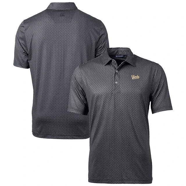 Men's Cutter & Buck Black Vanderbilt Commodores Vault Pike Banner Print Stretch Polo