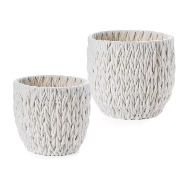 Round Cotton Woven Basket with Handles, Gray, Medium