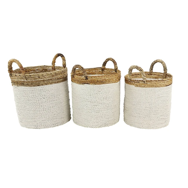 Multi Colored Seagrass Contemporary Storage Basket Set