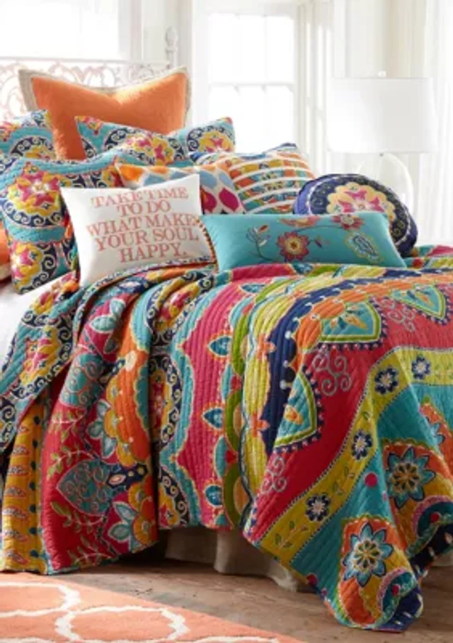 Pebble Beach 6 Piece Cotton Sateen Quilt Set with Throw Pillows