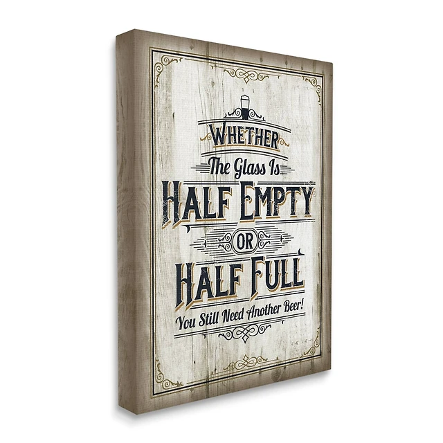Stupell Industries Half Empty Beer Sign Bar Room Word Design Canvas Wall Art