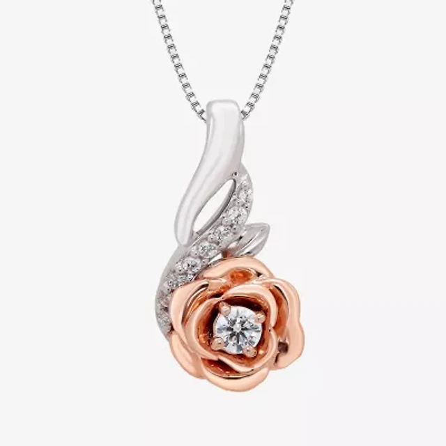 Enchanted Disney Belle 1/10 CT. T.w. Diamond Frame Rose Pendant in 10K Two-Tone Gold – 19"