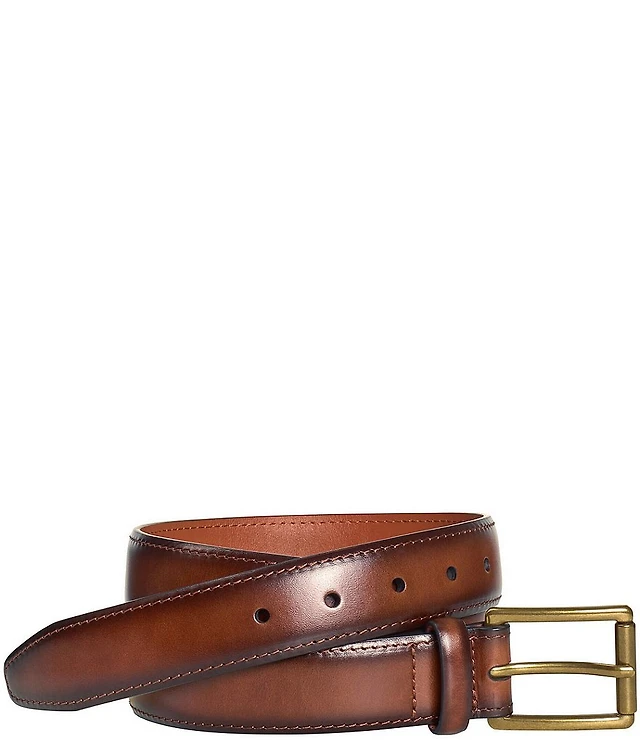 Johnston & Murphy Men's HandSained Flat-Edge Leather Belt