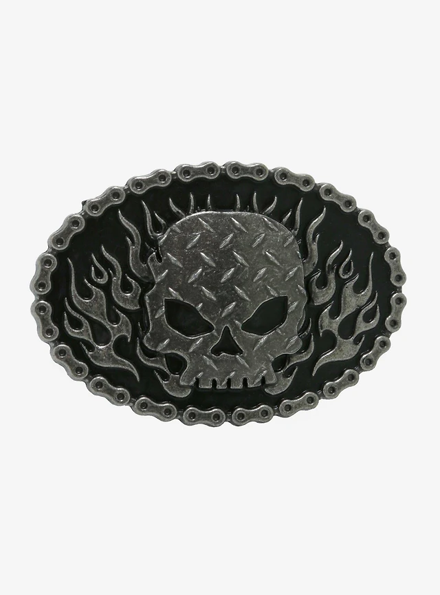 Flame Skull Single Belt Buckle